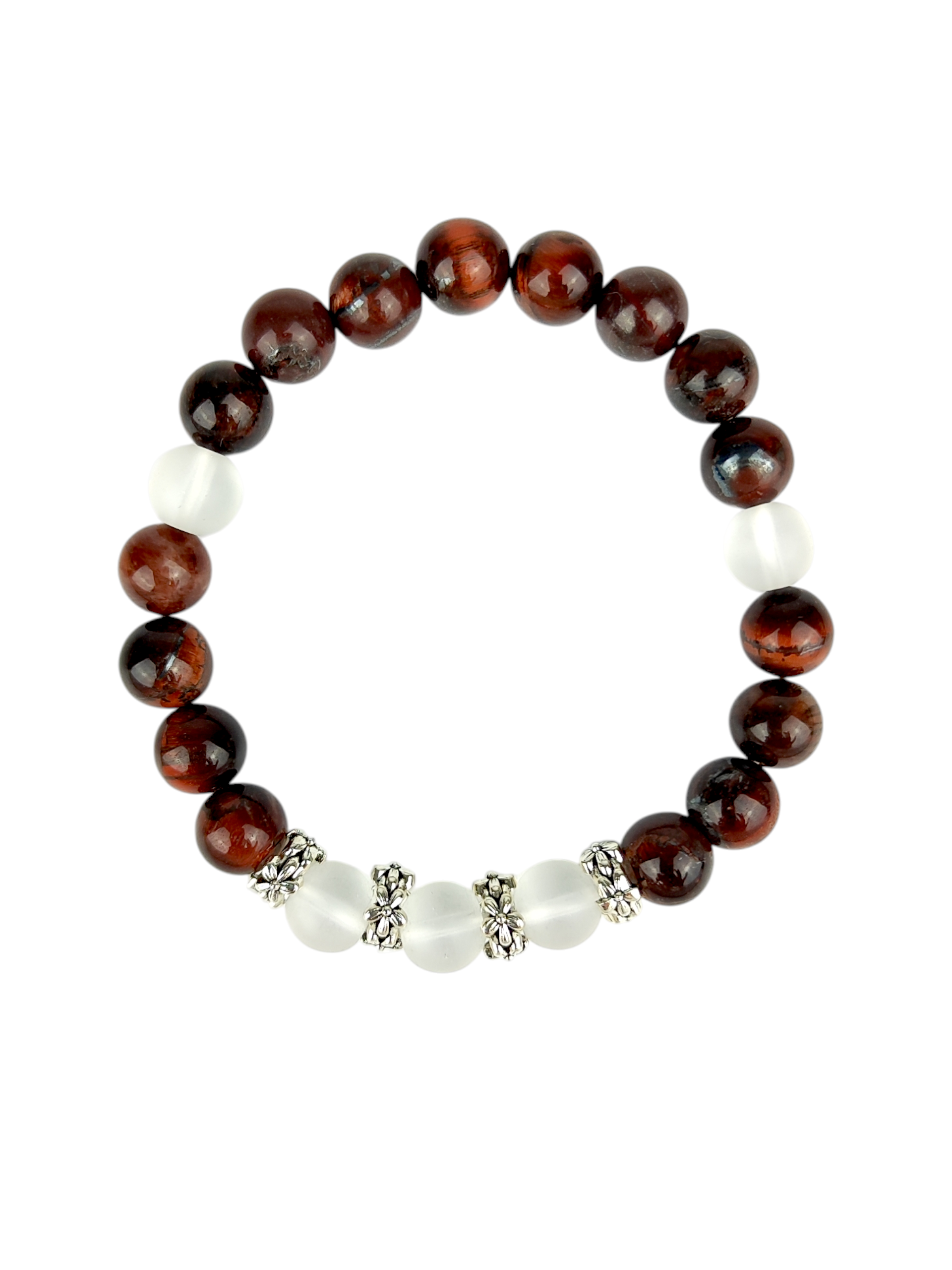 Kamienie: bawole oko 8 mm, kwarc górski matowy 8 mm