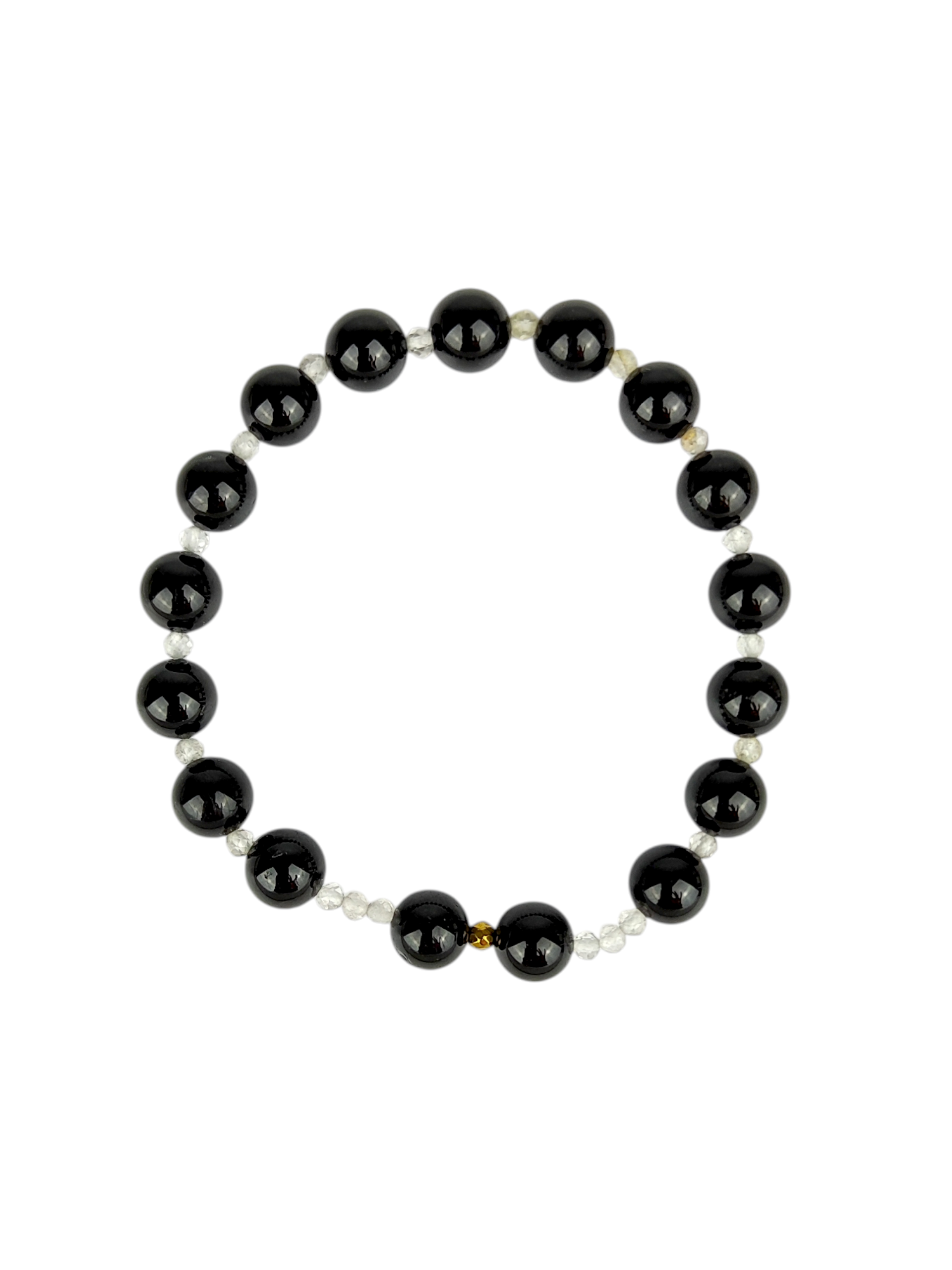 Ręcznie pleciona bransoletka wykonana z naturalnych 8 mm kamieni czarnego turmalinu, przełożonych delikatnymi 3 mm koralikami cytrynu, łączy w sobie elegancję, ochronę energetyczną i pozytywną wibrację.