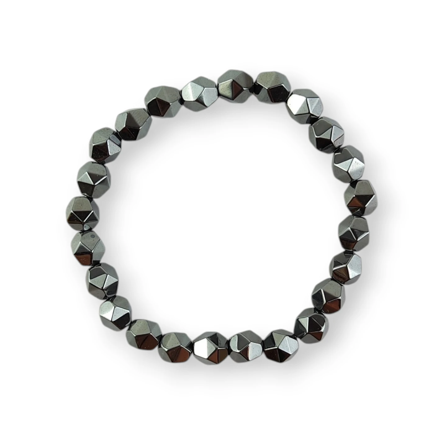 Ręcznie wykonana bransoletka na elastycznej gumce z naturalnych kamieni fasetowanego srebrnego hematytu o średnicy 8 mm. Minimalistyczna forma i subtelne szlify sprawiają, że kamienie pięknie odbijają światło, nadając całości elegancki, nowoczesny charakter. To prosta, ale wyrazista bransoletka, która pasuje do wszystkiego.
