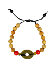 Czerwony jaspis wzmacnia poczucie bezpieczeństwa, stabilności i odwagi, chroniąc przed negatywną energią oraz wspierając przepływ obfitości. Drzewo sandałowe sprzyja wewnętrznemu wyciszeniu, harmonii i świadomemu działaniu. Moneta feng shui symbolizuje przyciąganie dobrobytu, szczęścia i ochronę materialną.