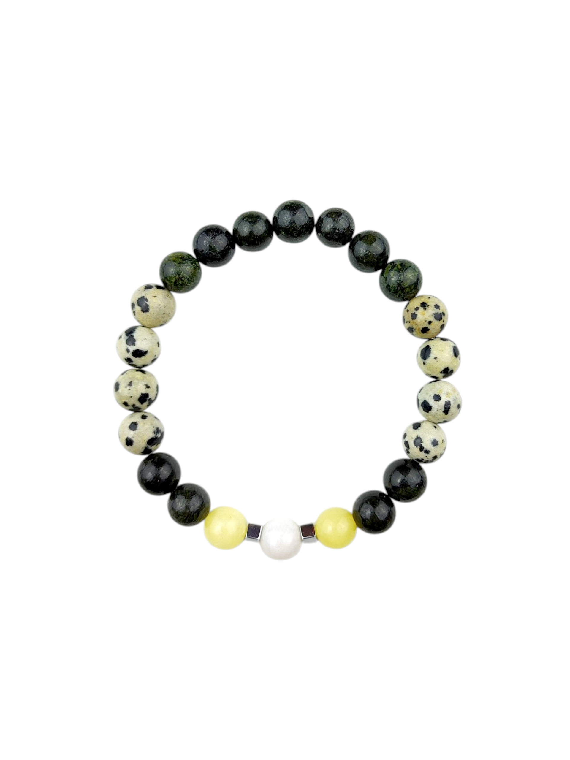Bransoletka Mala 21 kamieni CHAKRA STONES / Jaspis Dalmatyński, Serpentynit, Jadeit Żółty