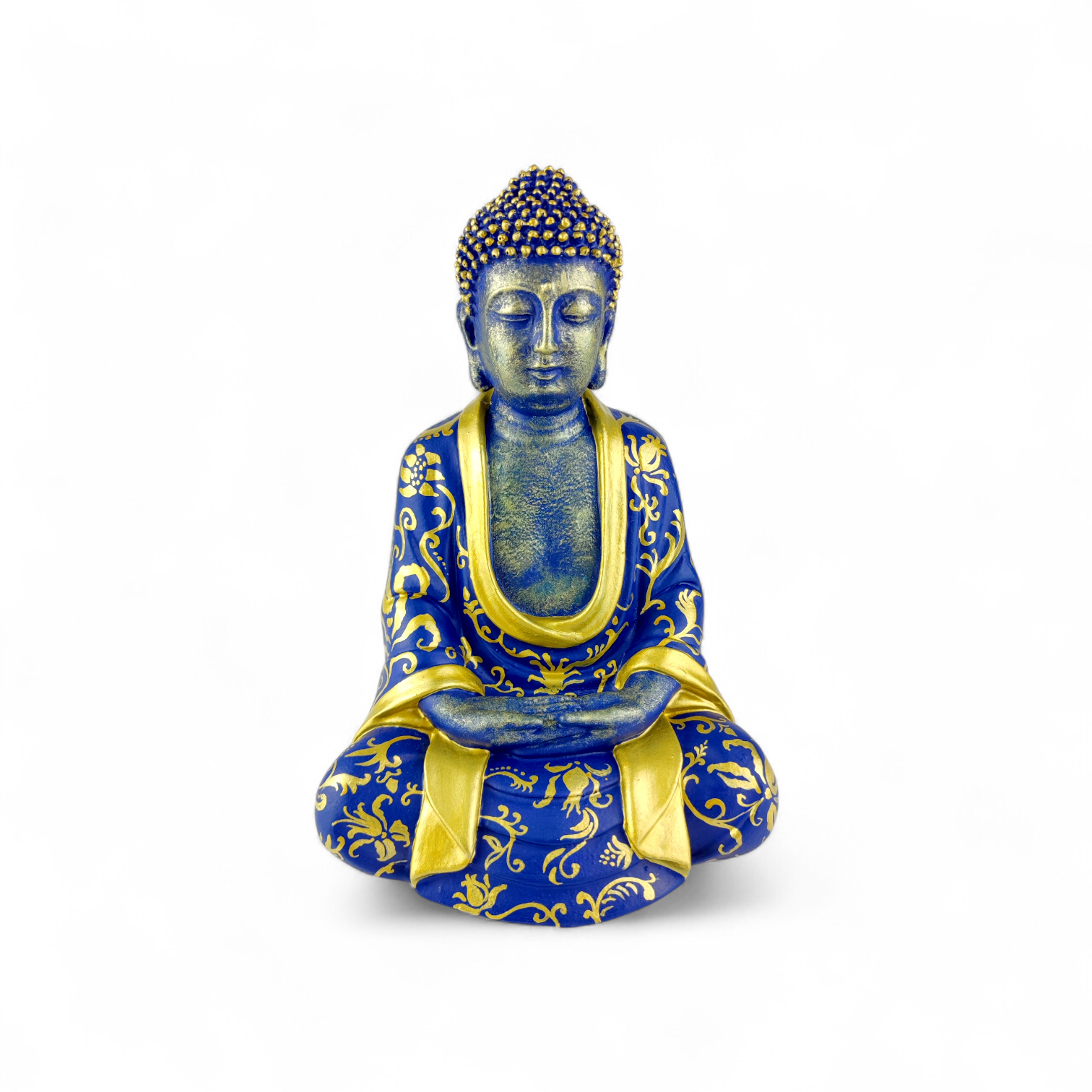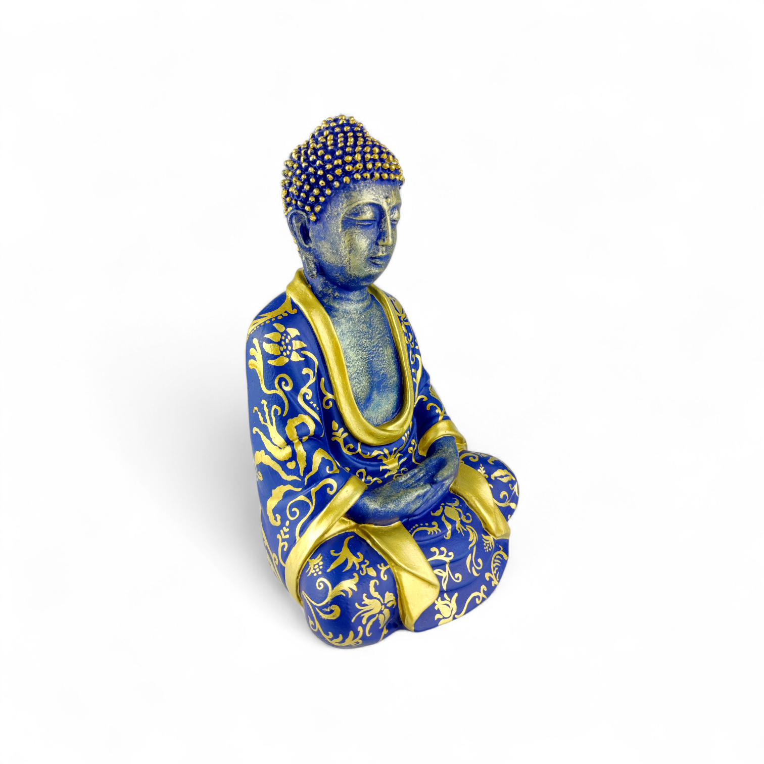 Elegancka figurka Buddy wykonana z trwałej żywicy, ręcznie malowana by Hash z dbałością o detale.