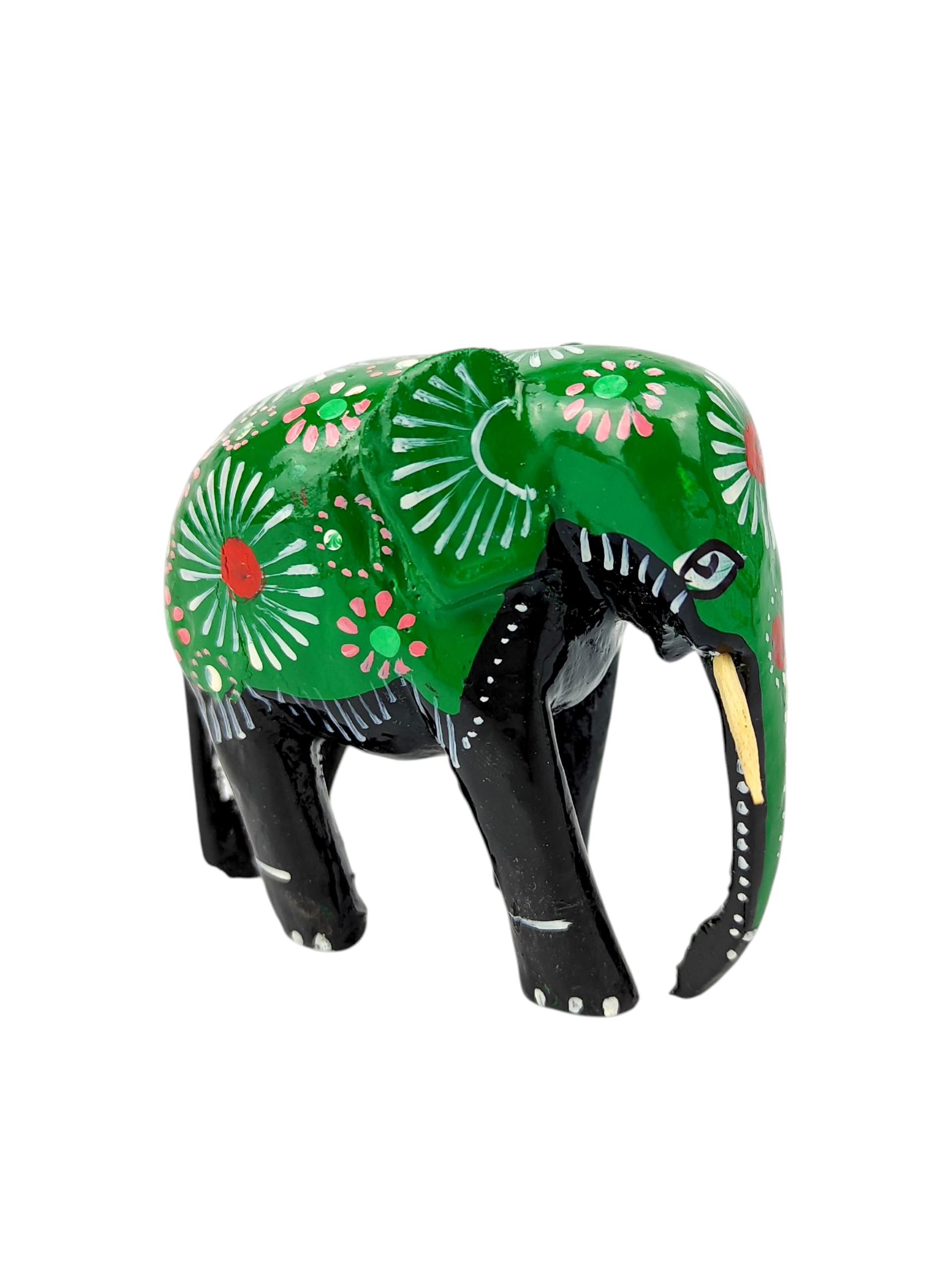 Figurka Słoń drewniana malowana metoda BATHIK 8cm ZIELONY