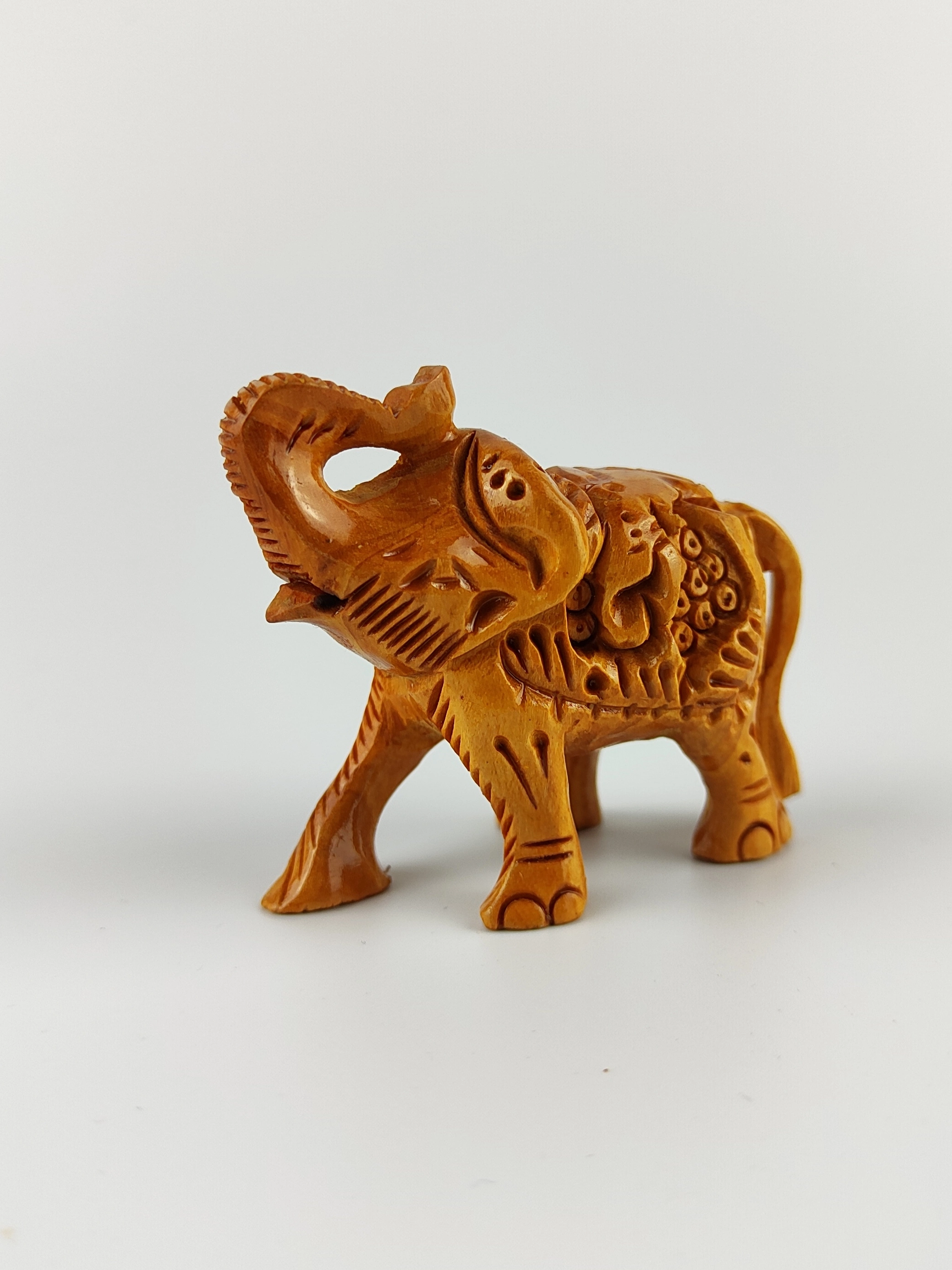 Figurka drewniana Słoń / tradycyjne rzeźbienia zwierząt na grzbiecie / rozmiar S