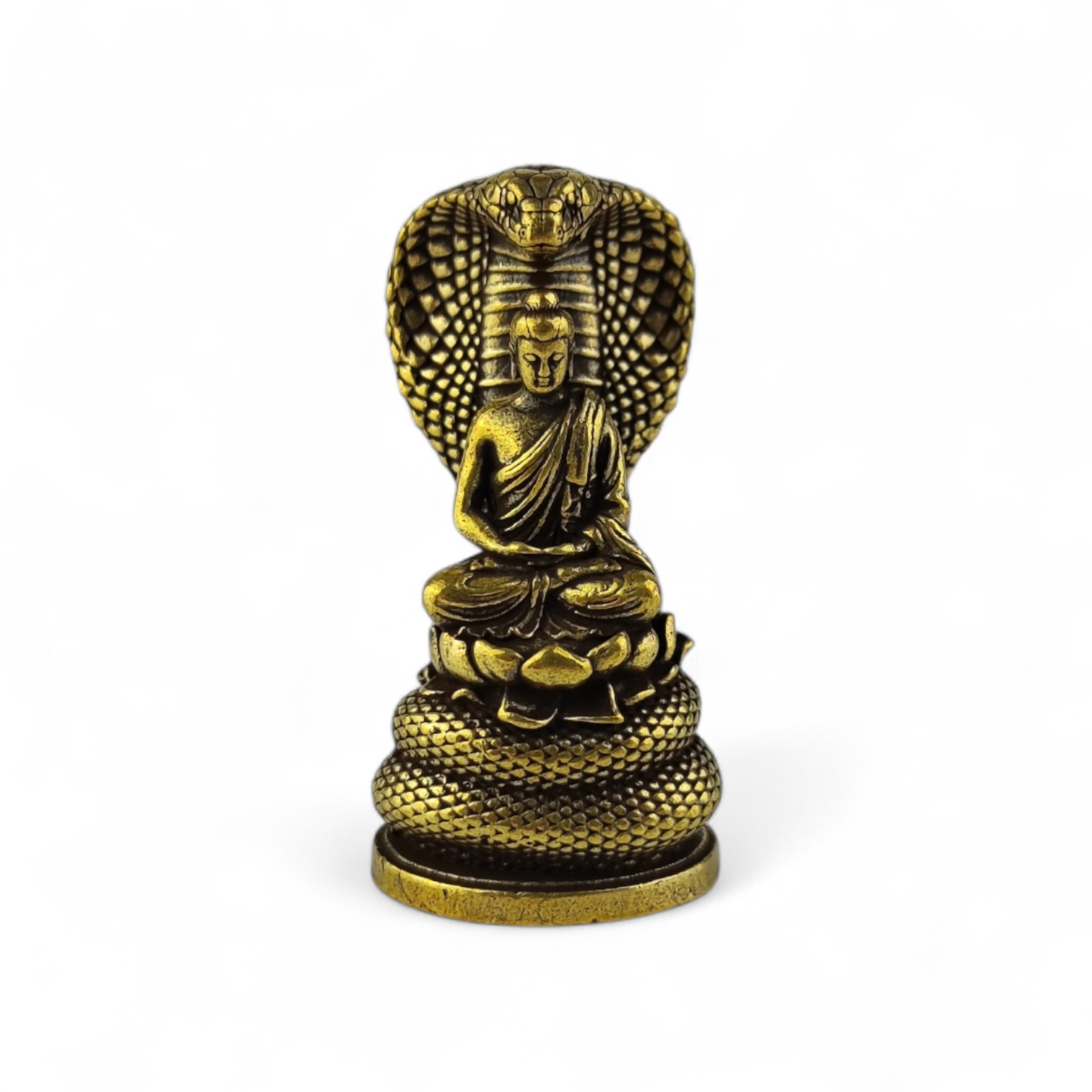 Figurka mini BUDDA z mosiądzu SNAKE GOLD BUDDHA PREMIUM