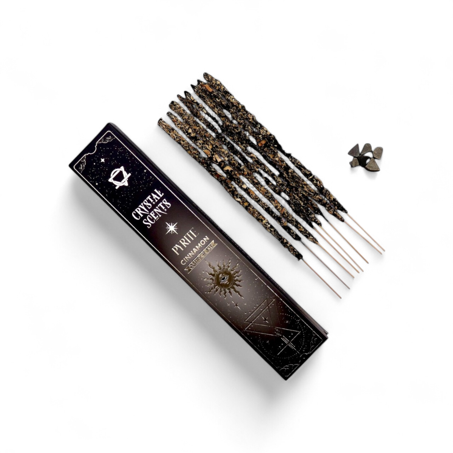 Wyjątkowe kadzidełka CRYSTAL SCENTS – Piryt i Cynamon to energetyczne połączenie ciepłego, korzennego aromatu cynamonu z mocą naturalnego pirytu – kamienia obfitości i działania.