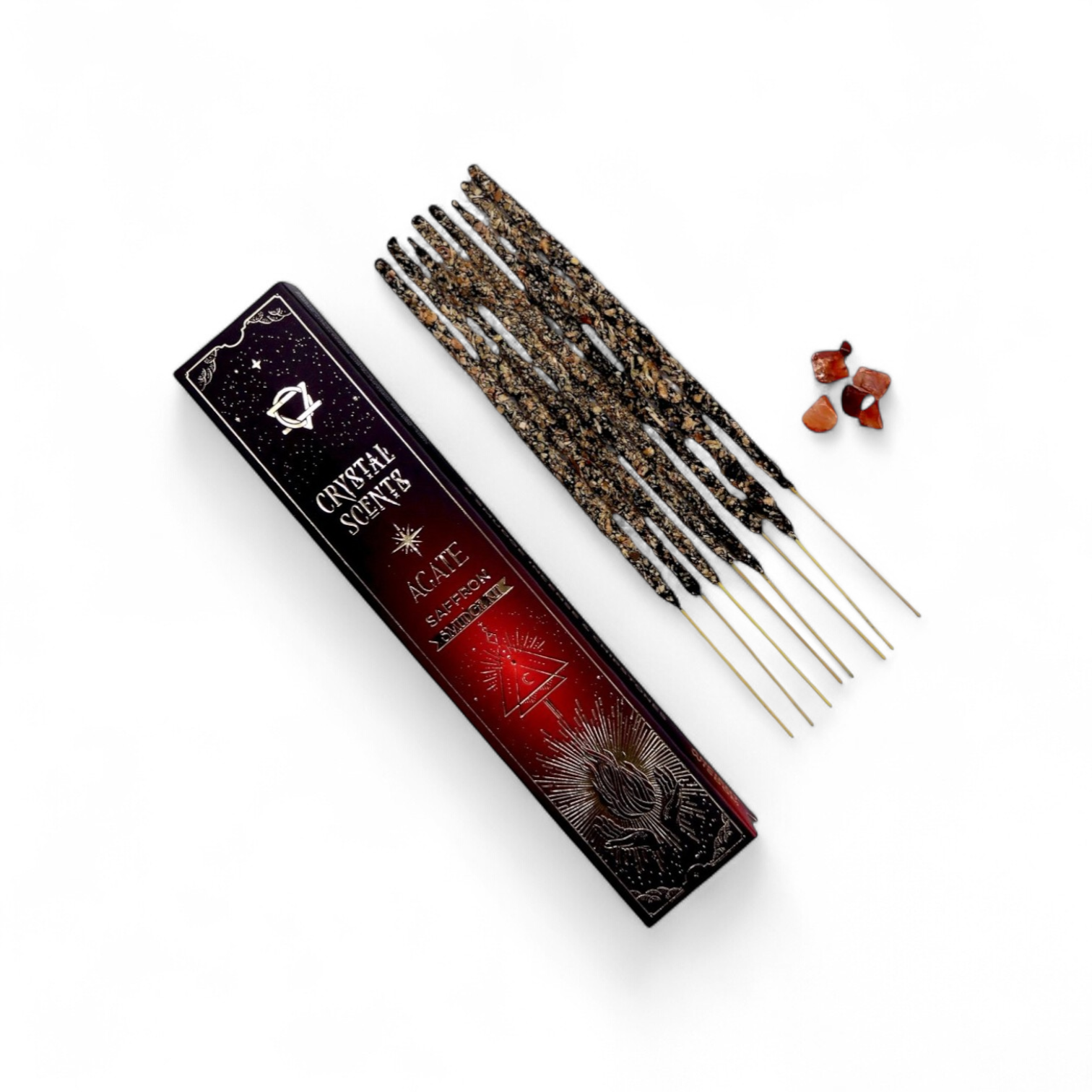 Wyjątkowe kadzidełka CRYSTAL SCENTS – Czerwony Agat i Szafran to intensywne, energetyzujące połączenie orientalnego aromatu szafranu z mocą naturalnego czerwonego agatu – kamienia siły i stabilności.