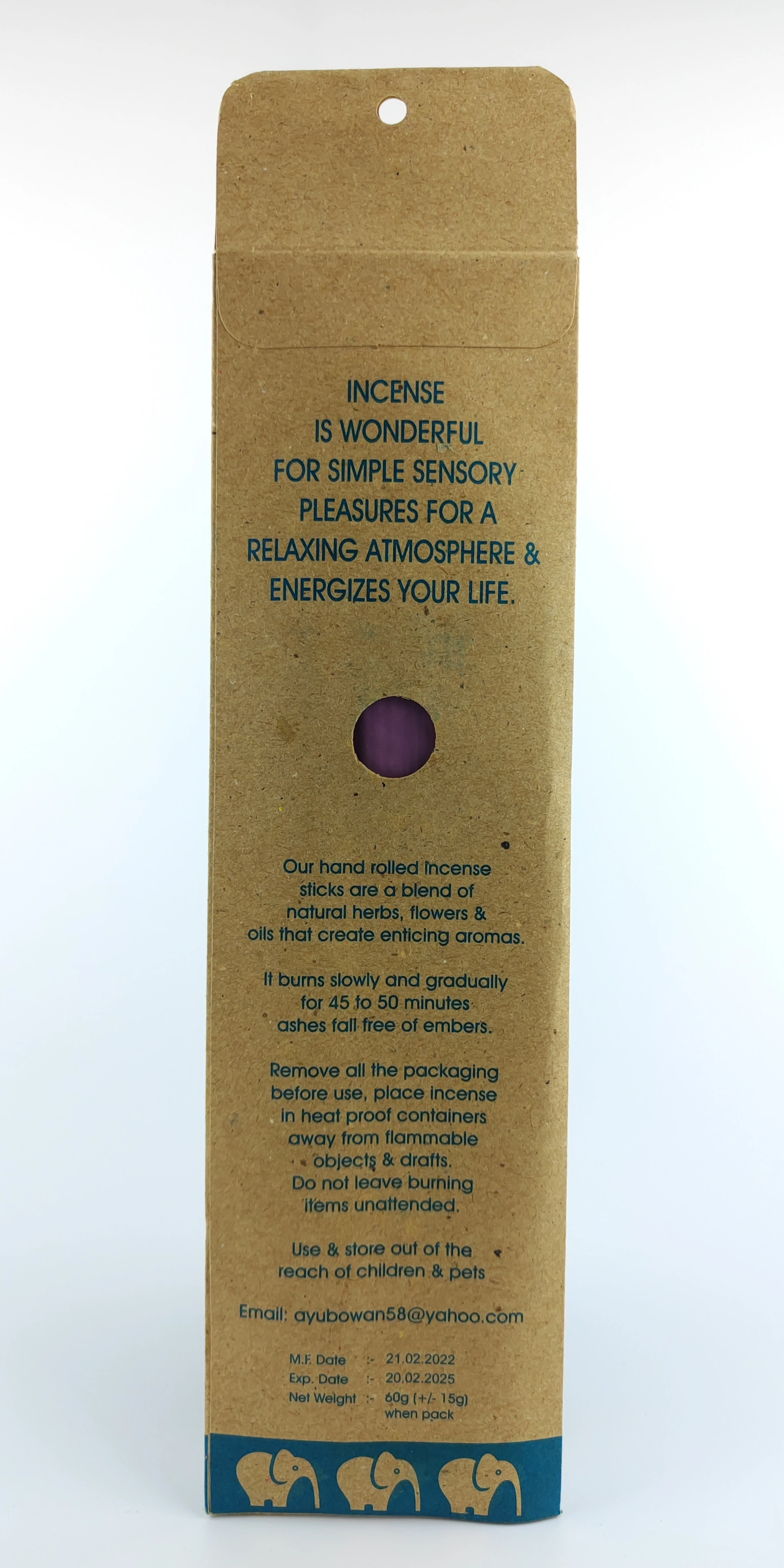 Opakowanie kadzideł wykonane jest z papieru z recyklingu.