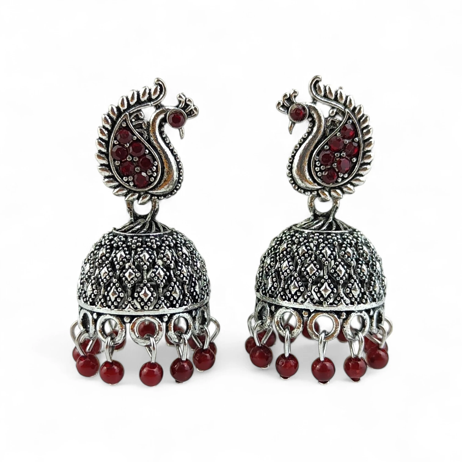 Kolczyki etniczne Jhumka (Jhumki) – tradycyjny wzór, kolor srebrny WZÓR 4