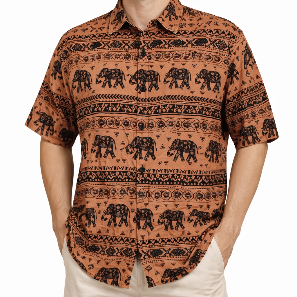 Koszula ELEPHANT krótki rękaw wzór Słonie brązowa XL
