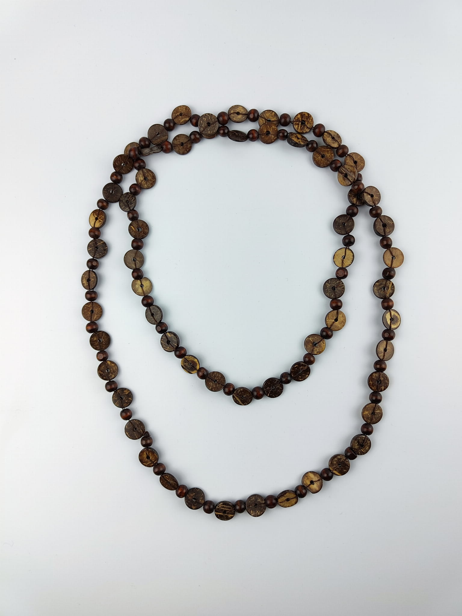 Każdy element naszyjnika został starannie wykonany z naturalnej łupiny kokosa. To nie tylko ekologiczny materiał, ale także hołd dla przyrody i sztuki rękodzielniczej.