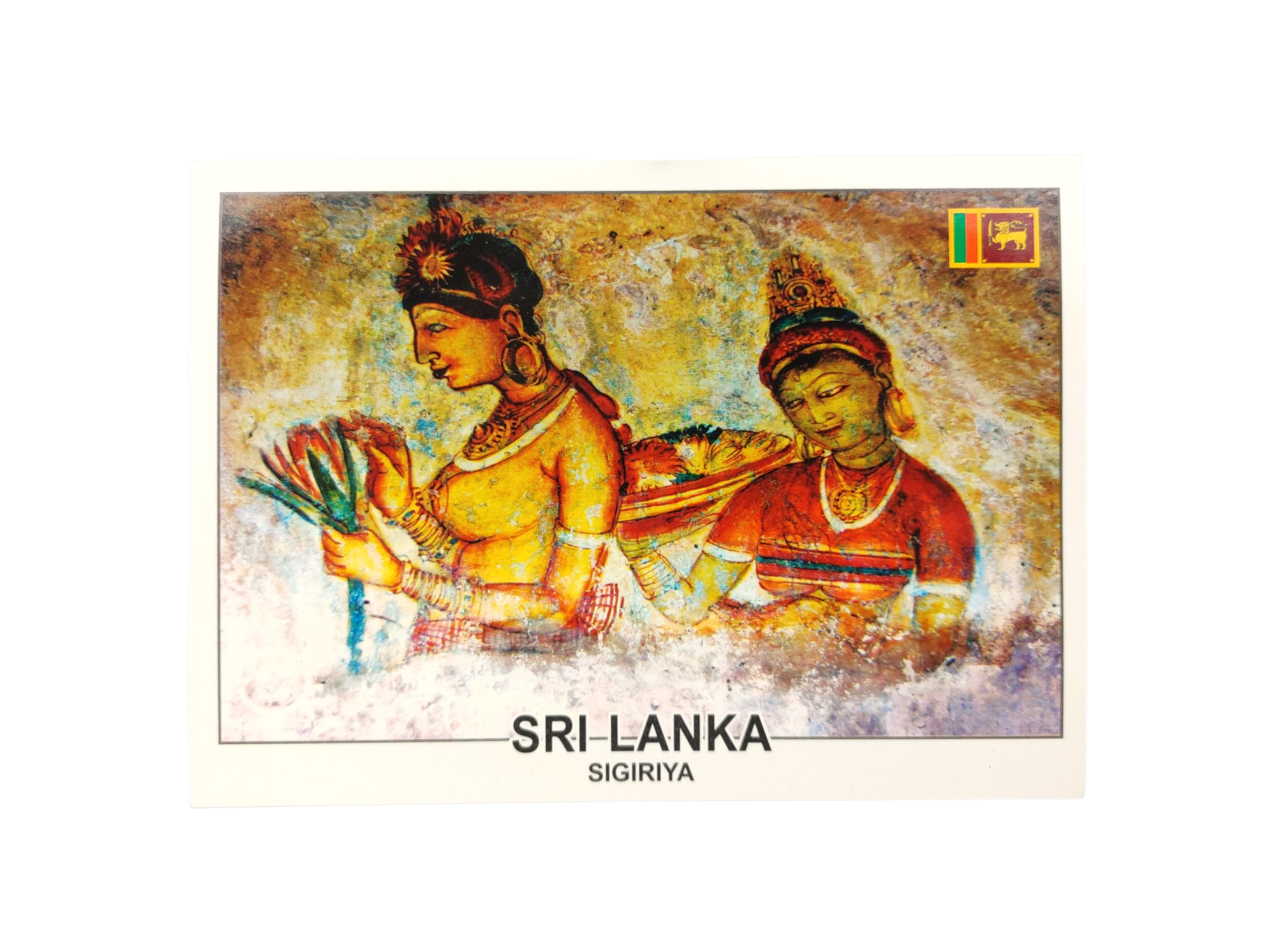 Zanurz się w dziedzictwie kulturowym Sri Lanki dzięki tej wyjątkowej pocztówce przedstawiającej słynne freski z Sigiriyi – Lwiej Skały, uznawanej za ósmy cud świata.