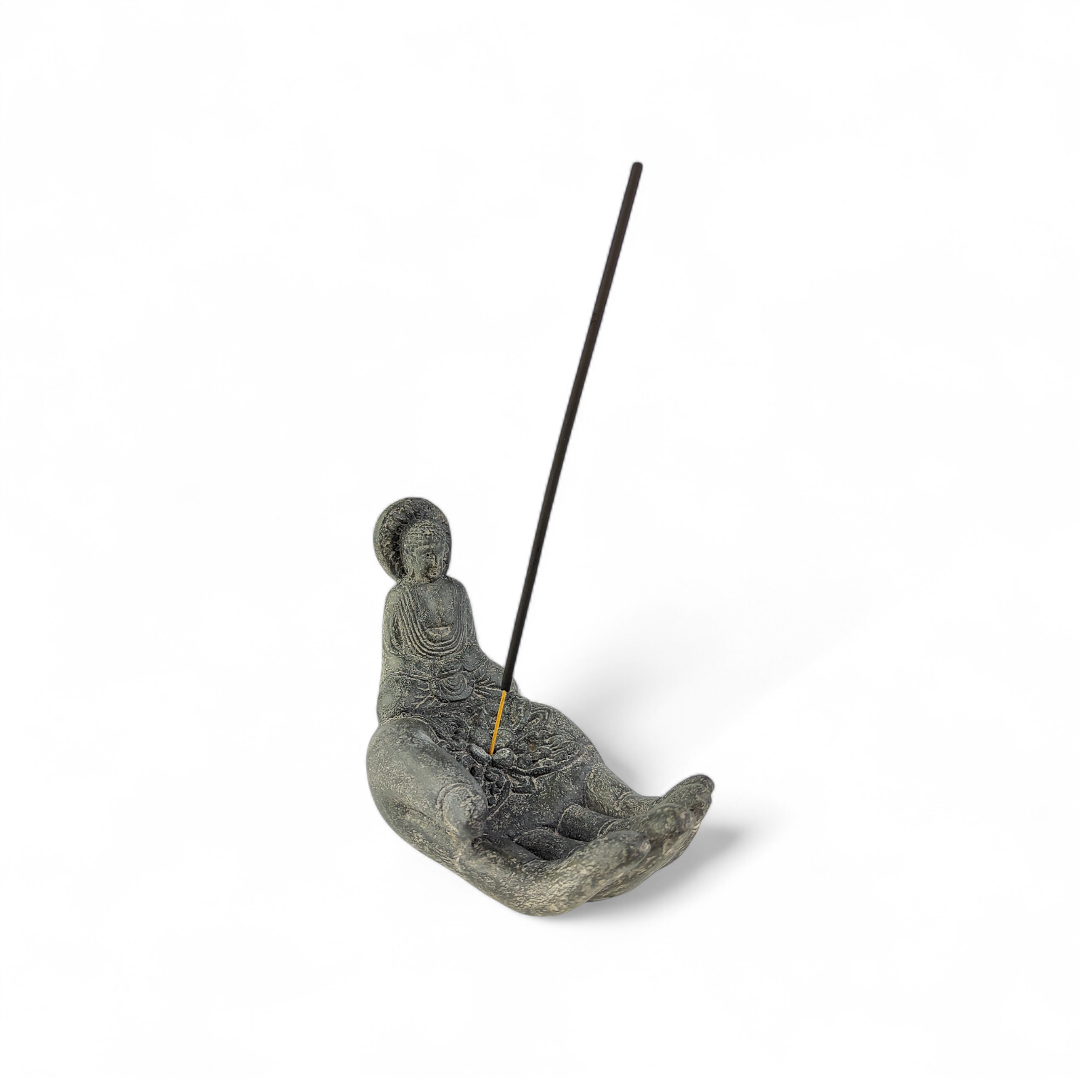 Wyjątkowa podstawka pod kadzidełka z motywem Buddy spoczywającego na dłoni to nie tylko praktyczny dodatek, ale też mocny, symboliczny akcent do wnętrza. Każda sztuka jest ręcznie rzeźbiona z betonu, dzięki czemu nie ma dwóch identycznych egzemplarzy – każda podstawka jest unikatowa.