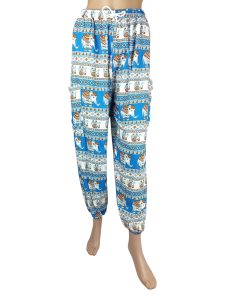 Spodnie ELEPHANT wzór Słonie alladynki Onesize niebiesko białe