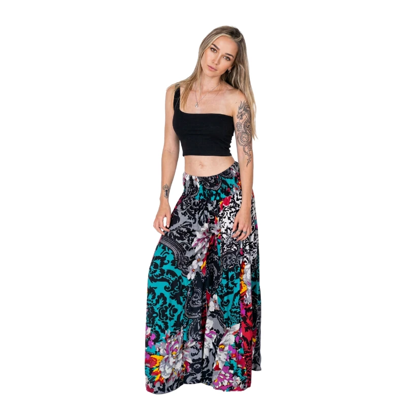 Spodnie wzorzyste boho palazzo z wiskozy wzór 1