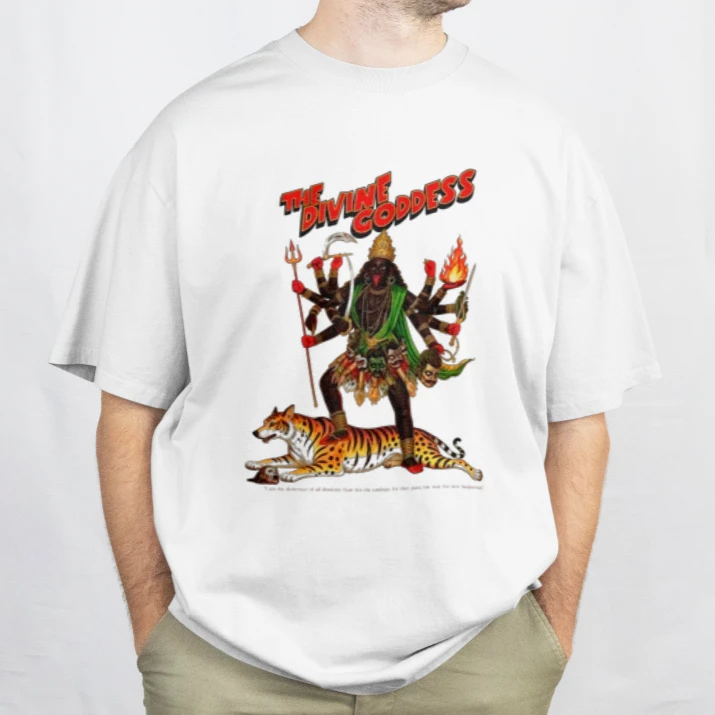 Model The Divine Goddess to wyrazisty projekt inspirowany siłą, energią i symboliką boskości. Centralna grafika przyciąga uwagę detalem i kolorem – to koszulka, która od razu nadaje charakter całej stylizacji.