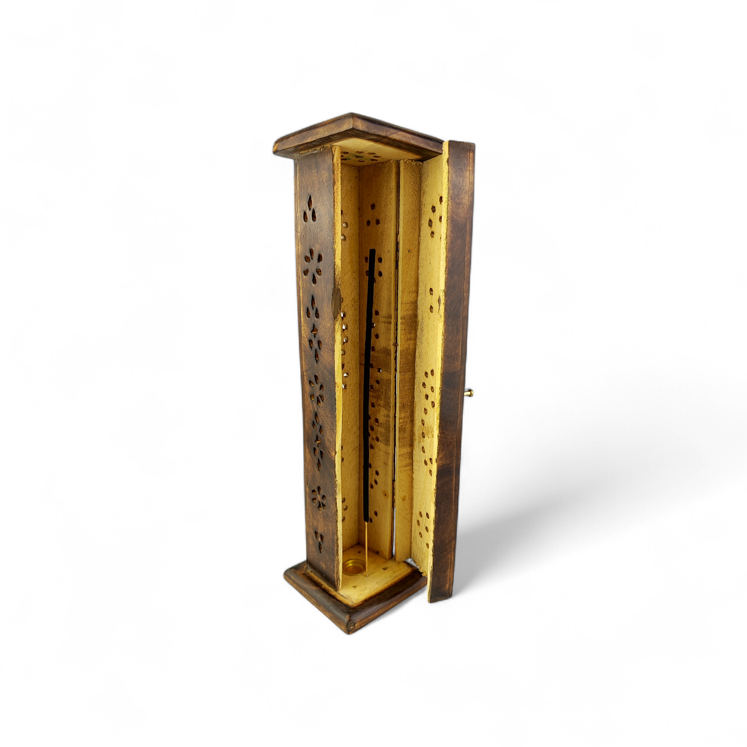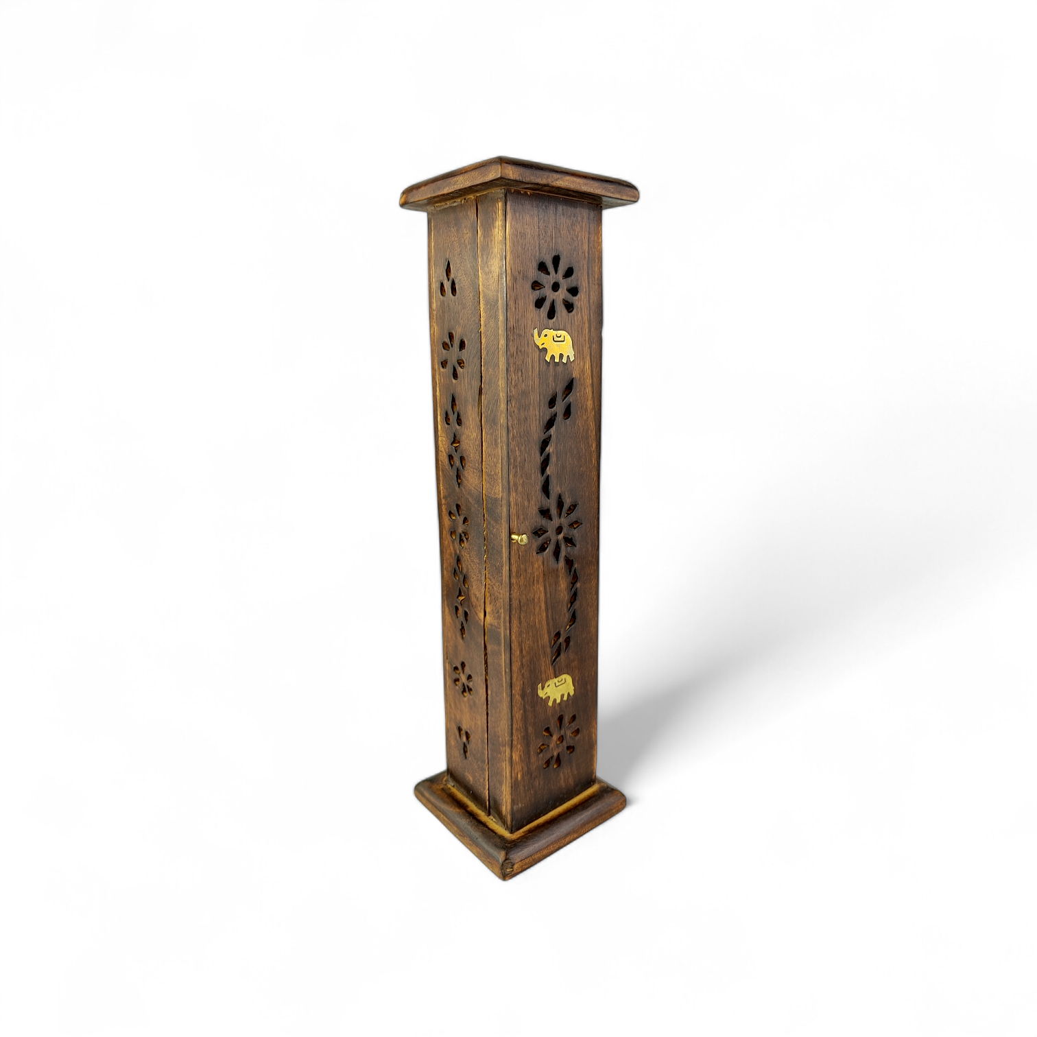 Kwadratowa Wieża dymna – Kadzielnica z drewna mango na kadzidła stożkowe i patyczkowe | 30 cm